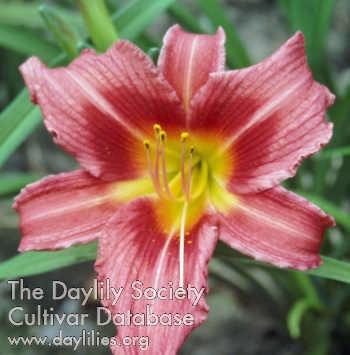| Description : lavender with purple eyezone and green throat | |