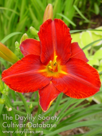 Description : red, copper and burnt orange blend with wide yellow halo and green throat