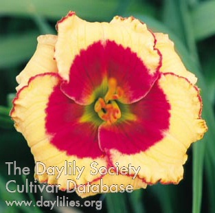 | Description : orange avec un œil et un bord rouges au-dessus de la gorge verte | |