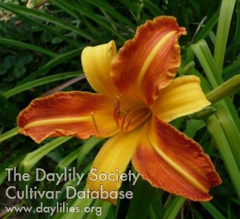 | Description : Bicolore rouille vif et orange, nervure médiane orange crémeux sur les pétales | |