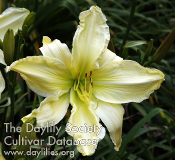 | Description : creamy white with lavender pink edge and green yellow throat | |