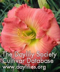 | Description : Rouge rose foncé avec filigrane rose lavande et bord au-dessus de la gorge jaune à verte | |