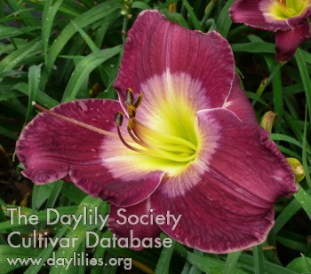 Description : burgundy purple with creamy violet plum purple eyezone above lime chartreuse throat